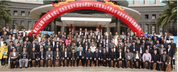 Plastic Association special committee PVC foam products annual meeting and technical seminars 2014 all posed for photos. The first row, third from left, chairman of sanyi company : Zhou Yuliang