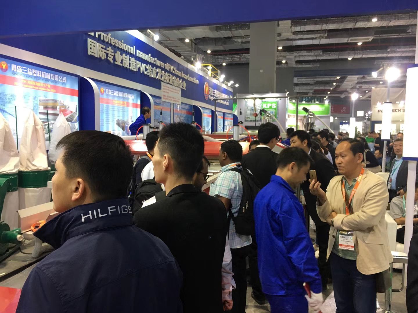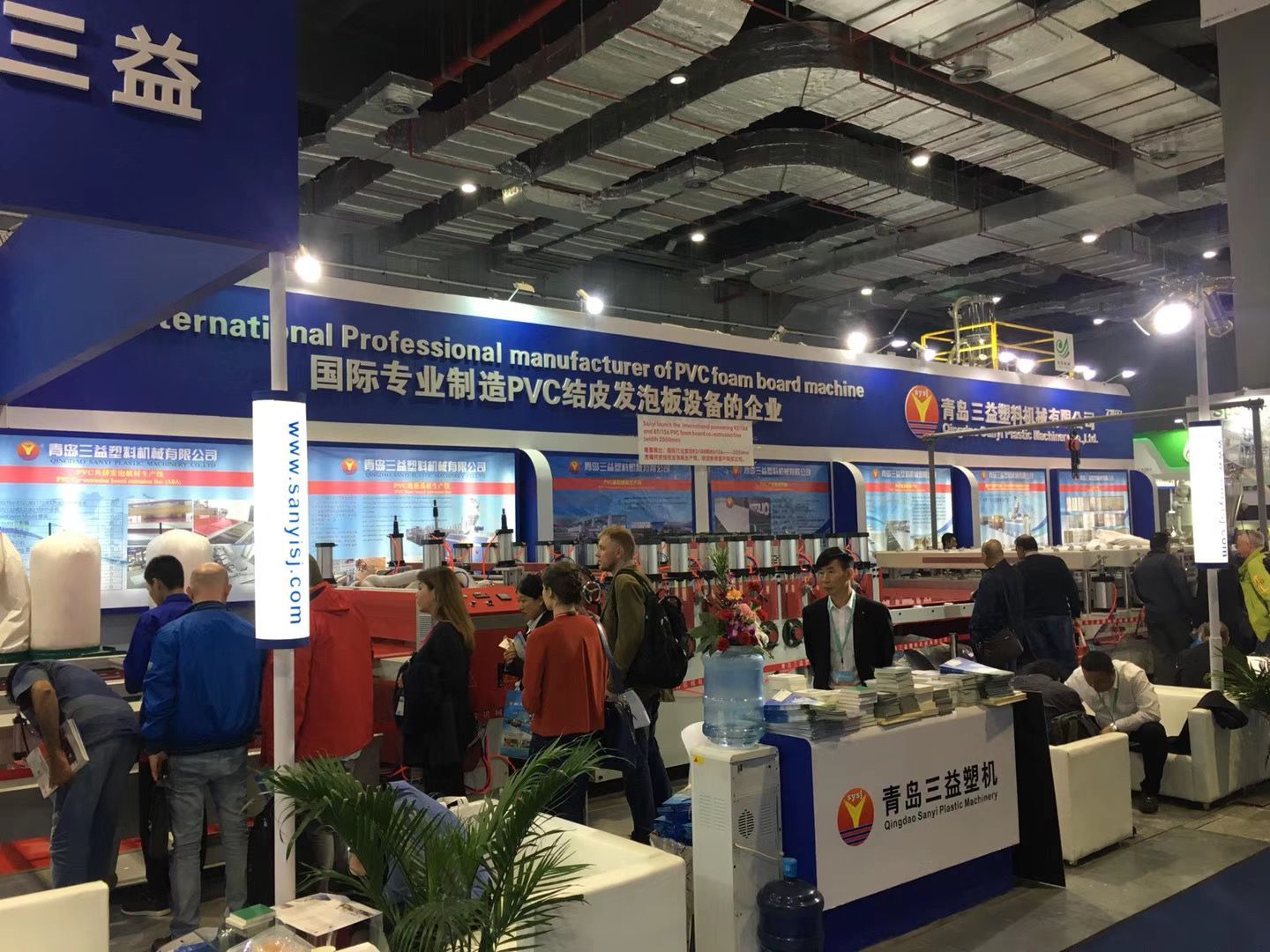 2018SANYI was runnign and launching the international pioneering 92/188 and 80/156 PVC co-extrusion Foam Board Production Line (width 2050mm) in Chinaplas2018